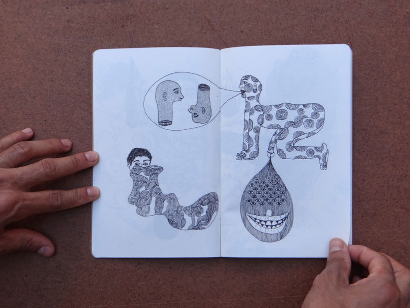 Ricardo has been compiling his drawings in notebooks (diaries) for years, combining his personal imaginary language with everyday life through a perspective that analyzes both concepts of irony and balefulness. This sketchbook contains drawings produces between Janaury and May 2017.